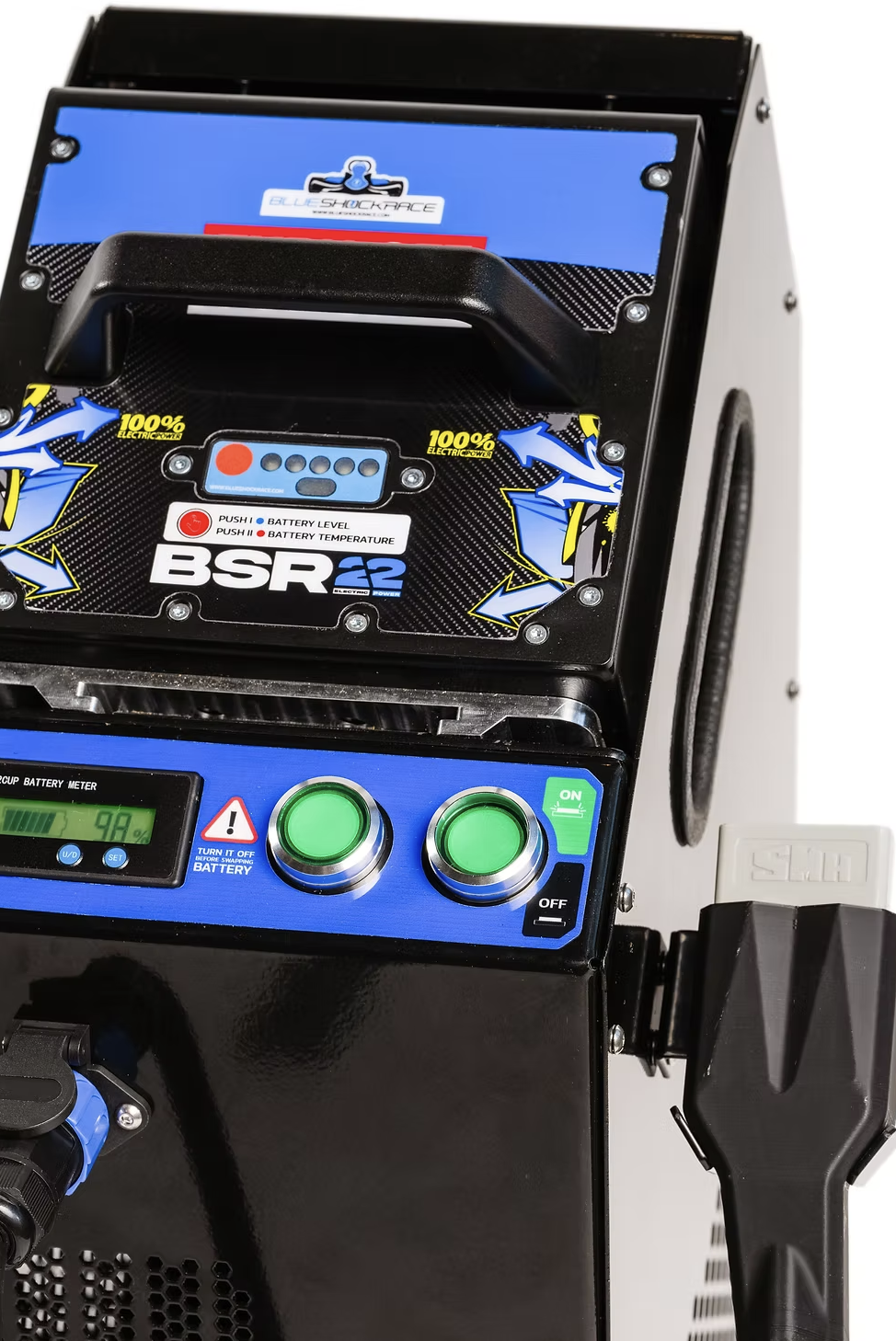 Power up your racing fleet with the Blue Shock Race BSR DCD1600 Electric Kart Battery Dual Charging Dock, now available from Kinetix. Built for high-demand rental kart operations, this heavy-duty dual charging system keeps your electric karts primed and ready to unleash the instant-torque excitement drivers crave.